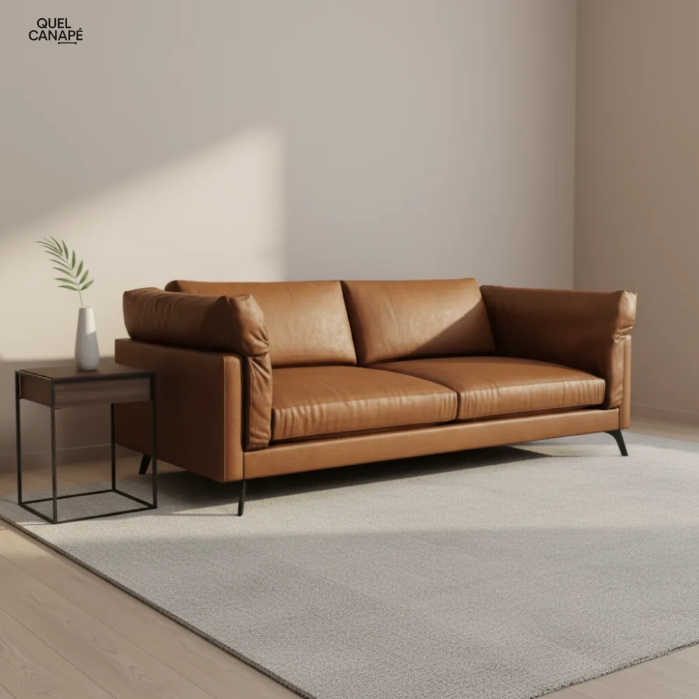 Attention néanmoins aux contraintes d'installation : ses dimensions imposantes (229 x 95 x 88 cm) nécessitent un salon spacieux et un accès suffisant pour la livraison. Le cuir naturel demande également un entretien régulier et peut évoluer selon les conditions environnementales.