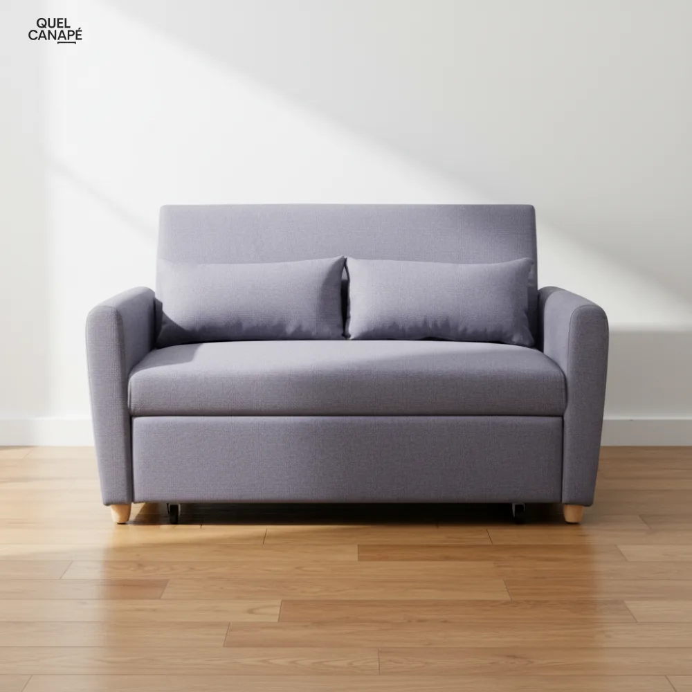 Prenez note néanmoins que ses dimensions compactes (140x85 cm) conviennent mieux aux petits espaces qu'aux grandes pièces, et que le couchage occasionnel reste plus adapté qu'un usage quotidien intensif. La teinte gris clair, bien que polyvalente, pourrait montrer plus facilement certaines salissures.