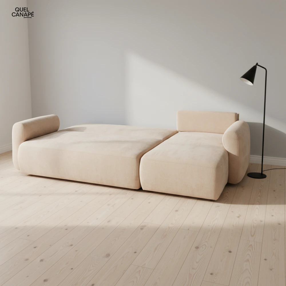 Vous découvrirez un système pensé pour le quotidien : lorsque vos proches viendront passer le week-end, cette assise généreuse deviendra leur refuge pour la nuit. Le mécanisme de conversion, associé au coffre de rangement intégré, vous permettrait d'optimiser chaque mètre carré de votre salon.