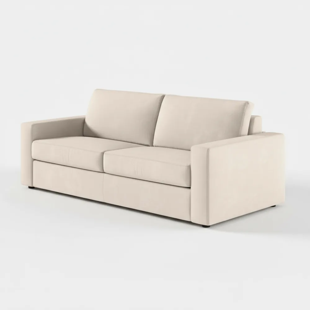 - Petit espace/studio (moins de 20 m²) : canapé convertible compact 1-2 places, clic-clac ou BZ (couchage 90-140 cm). Privilégiez les modèles peu profonds (80-85 cm). Consultez notre guide des canapés 2 places pour découvrir les modèles compacts.