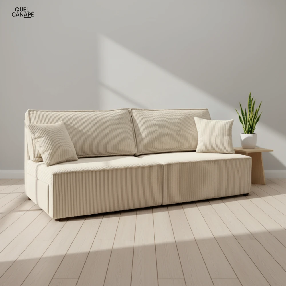 Les systèmes d'ouverture express (aussi appelés systèmes rapido) permettent une transformation en quelques secondes, sans effort ni manipulation complexe. Vous passez du mode salon au mode nuit en un geste fluide, sans retirer les coussins ni démonter quoi que ce soit. Un gain de temps précieux au quotidien.