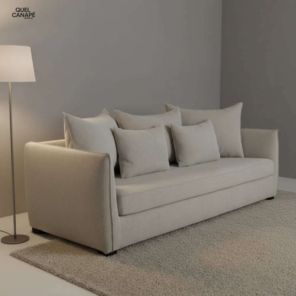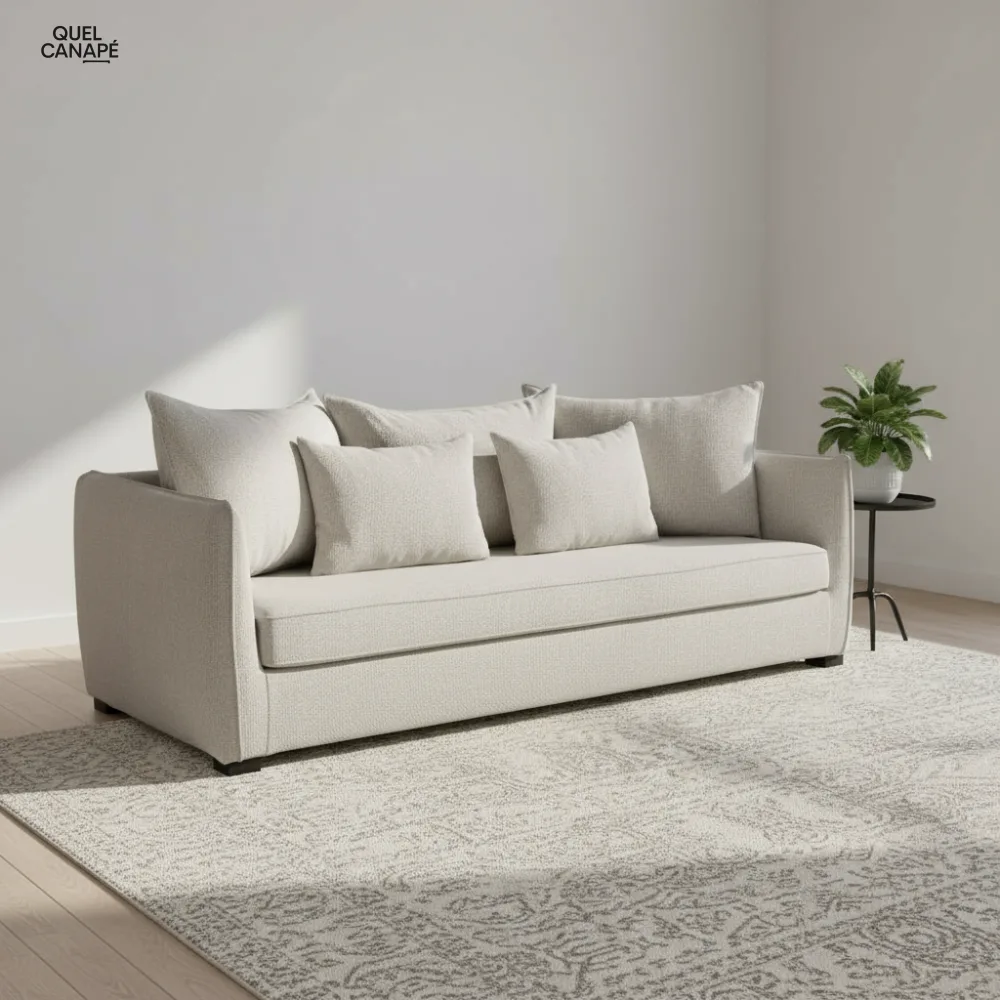 Ce Canapé Lounge conviendra parfaitement si vous recherchez un mobilier familial alliant qualité française et design intemporel. Vous apprécierez particulièrement ce modèle si votre salon nécessite une assise spacieuse capable d'accueillir quatre personnes confortablement, tout en conservant une esthétique sobre et raffinée. Cette pièce séduira les amateurs de fabrication française qui souhaitent investir dans un canapé durable, ainsi que ceux qui privilégient les teintes neutres permettant une décoration évolutive selon les saisons et les tendances.