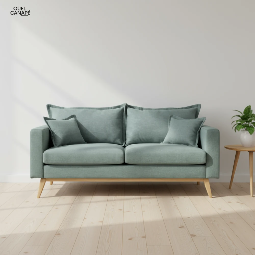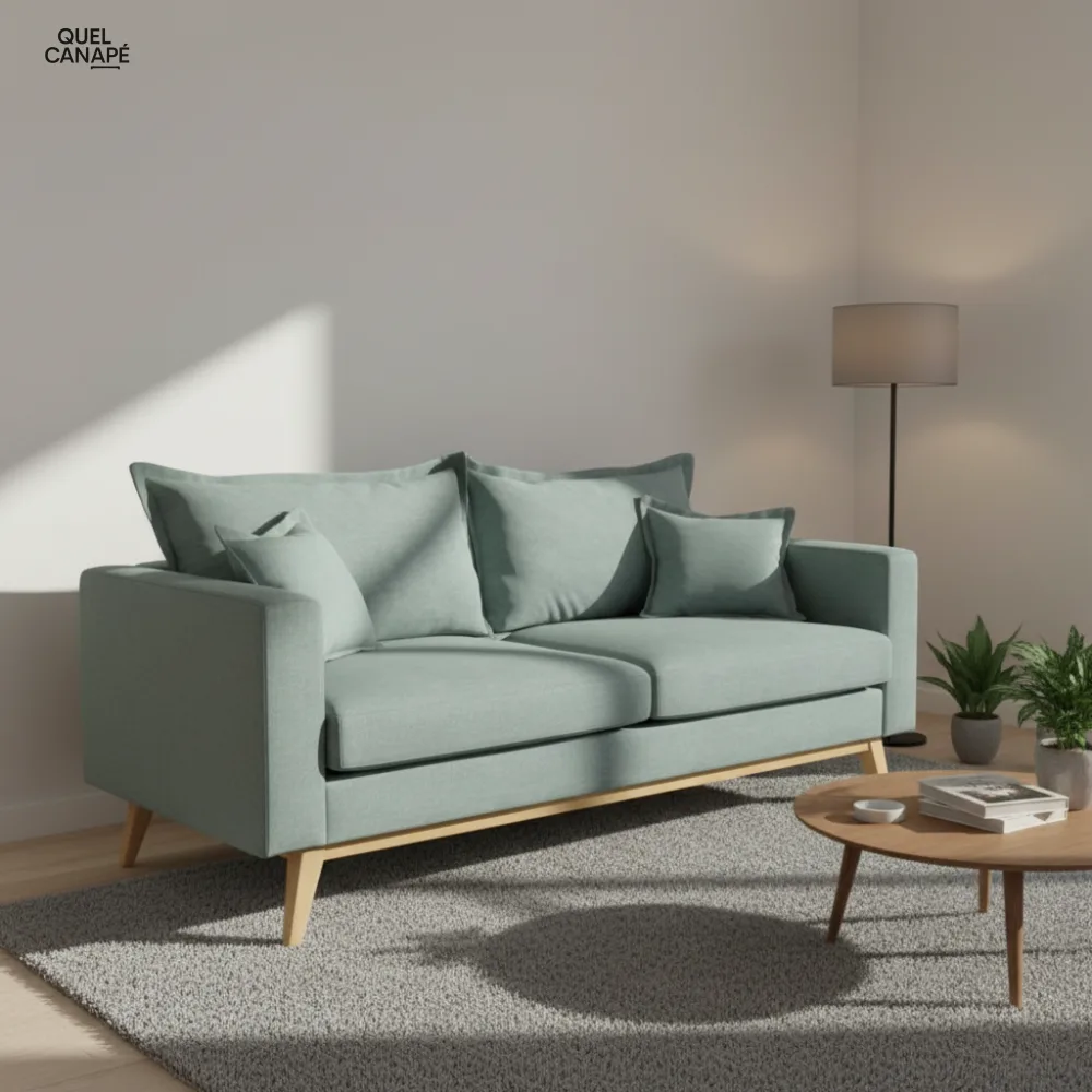 Le Canapé Duke de Maisons du Monde mise sur le charme vintage avec ses lignes rétro et ses pieds scandinaves en hêtre massif. Sa fonction convertible transforme votre salon en chambre d’amis (couchage 188 x 140 cm), tandis que la densité d’assise de 35 kg/m³ assure un confort moelleux. Les housses déhoussables facilitent l’entretien quotidien. Idéal si vous recherchez un canapé 3 places stylé et polyvalent à prix accessible.